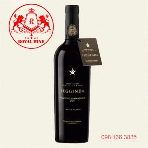 Rượu vang Leggenda Primitivo Di Manduria – Rượu vang Ý cao cấp được phân phối bởi Royal Wine. Chế độ bảo quản đảm bảo đúng tiêu chuẩn. Giao hàng trên toàn quốc